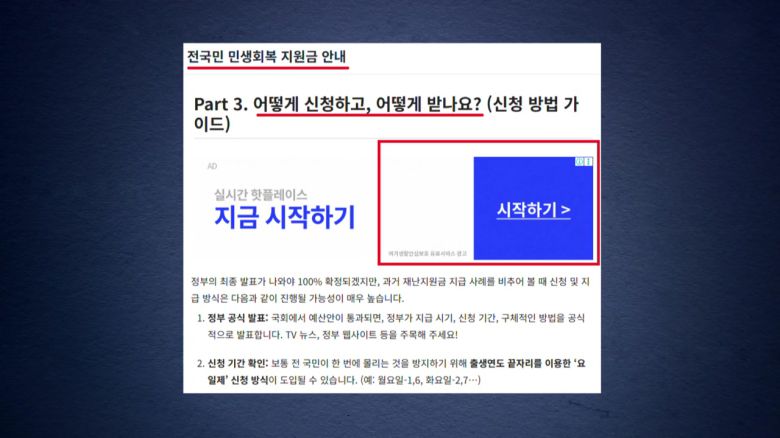 '민생쿠폰 신청' 누르니 '광고'..."가짜사이트 조심"