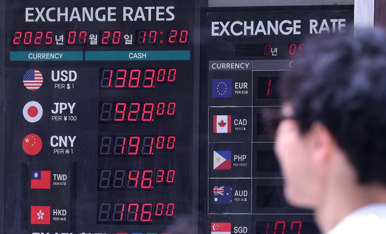 원·달러 환율이 두 달 만에 다시 1400원선에 바짝 다가선 20일 서울 중구 명동의 환전소에 환율 시세가 표시되고 있다./ 뉴스1 제공 |