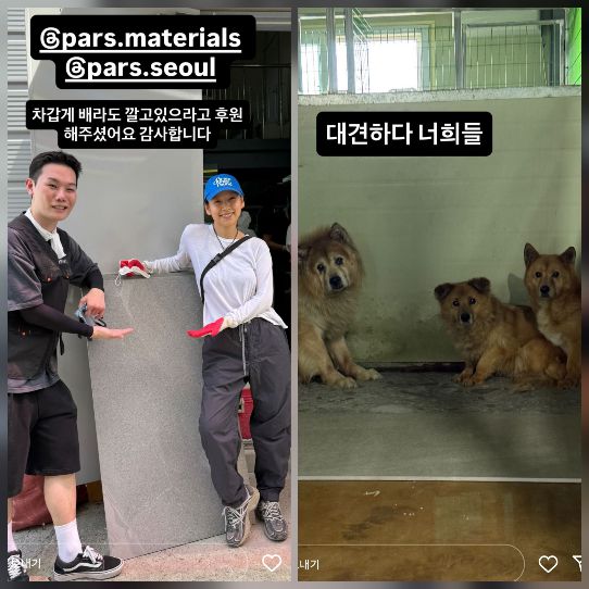 다음 사진에 등장한 유기견 세 마리는 후원받은 바닥재 위에 조용히 앉아 있었다. 이효리는 “대견하다 너희들”이라는 짧은 멘트를 남기며, 견사 안의 따뜻한 풍경을 감정 없이도 충분히 전달했다.