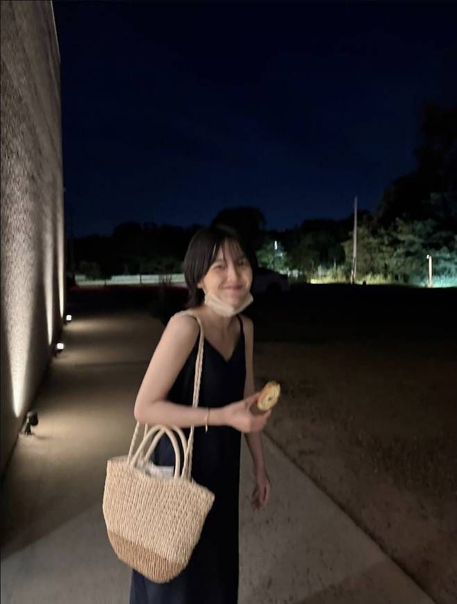 꾸미지 않은 듯 정돈된 헤어스타일과 린넨 소재의 원피스는 더운 여름에도 시원하고 고급스러운 인상을 줬다. 라탄 라지백과 얇은 골드 브레이슬릿으로 포인트를 더한 스타일링은 조용하지만 세련된 감도를 완성했다.