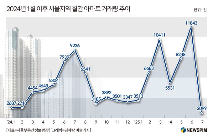 [서울=뉴스핌] 이동훈 선임기자 = 6.27 가계부채 관리강화방안이 시행 한달만에 주택 거래량을 대폭 줄이며 가격 상승폭도 꺾는 '소기의 목적'을 달성한 것으로 분석된다.