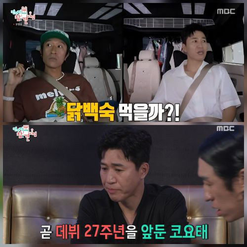 먼저 차량에 탑승한 김종민과 빽가는 나른한 기색을 숨기지 못했다. 빽가는 “왜 이렇게 자도 자도 피곤하지?”라고 말했고, 김종민도 “그렇지? 여름이라 그런가”라며 깊이 공감했다. 이어 “건강한 거 먹어야지, 닭백숙 같은 거”라며 보양식 생각에 입맛을 다셨다.