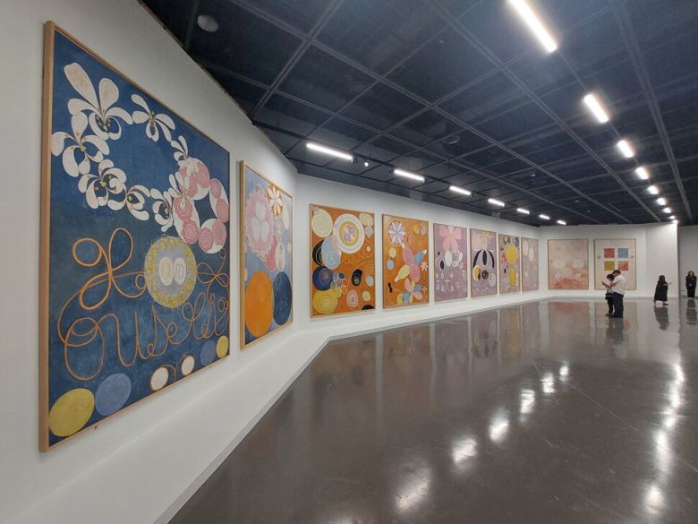 2층 공간에 7개 장면으로 펼쳐진 힐마의 전시는 작품의 면면이나 보존 상태, 전시 구성 등에서 일반적인 서구 거장 전시의 정형과 크게 다르다. 정규미술 교육을 받고 수의학연구소에서 해부용으로 나온 동물 사체와 식물 등을 정밀하게 그리는 세밀화 작업을 했던 힐마는 여동생 헤르미나의 죽음으로 관심을 갖게 된 영적 세계와 보이지 않는 자연 형상 너머의 세계에 관심을 갖게 된다. 이후 다른 여성 작가들과 5인회를 결성해 신의 계시를 화폭에 옮기는 영매의 그림을 그리게 되는데, 이 과정에서 나선과 자연 형상의 모티브를 바탕으로 한 특유의 추상회화를 개척한다. 지금까지 추상회화의 선구자로 알려진 러시아 출신의 바실리 칸딘스키, 네덜란드 기하추상의 대가 피트 몬드리안, 러시아 절대주의자 말레비치와 거의 같은 시기에 활동했지만, 1905년 가장 먼저 추상을 그린 그의 성취는 1986년 미국 라크마(LACMA) 전시에 나오면서 처음 알려졌고, 2018년 미국 구겐하임 미술관 회고전에 관객 60만명이 몰리고 영국 테이트모던도 따로 순회전을 마련하는가 하면 영화로도 제작되면서 선풍을 일으켰다. 이번 전시 또한 일본 도쿄국립근대미술관을 거쳐 찾아온 아시아 순회전의 일환이다.