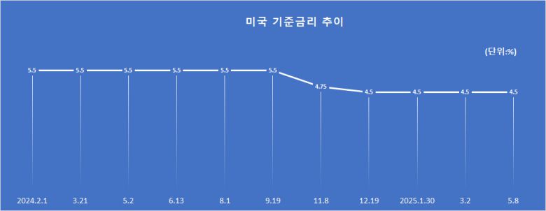 그 이후 2년이 지난 지금, 미국의 기준금리는 연 4.25~4.50%다. 1%p 내렸다.