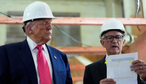 지난 25일 공사현장을 둘러본 트럼프 대통령은 공사비가 31억달러(약 4조2000억원)에 달한다고 주장했고, 파월 의장은 트럼프 대통령이 내민 문서를 확인한 뒤 "그 수치는 5년 전에 이미 완공된 길 건너편 제3의 건물까지 포함한 것"이라고 정정했다.