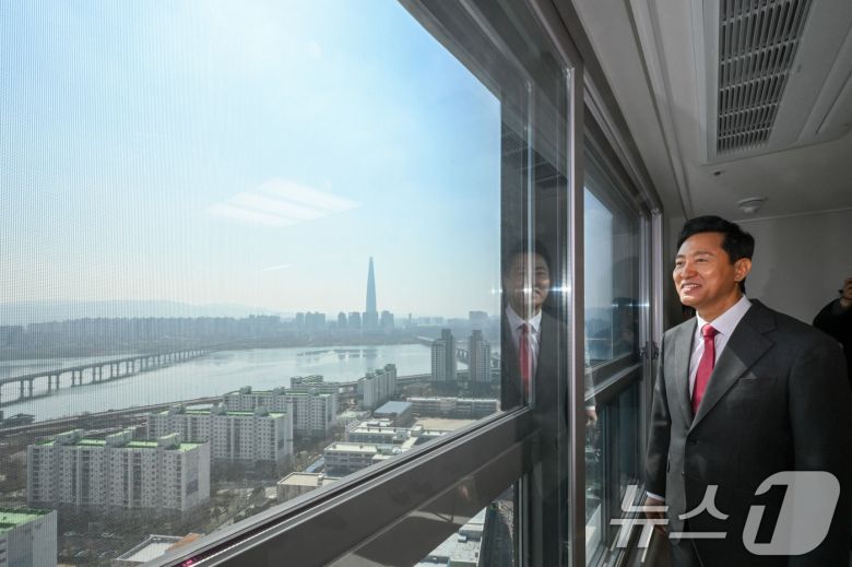 오세훈 서울시장이 서울 광진구에 위치한 신축 아파트 단지에서 신혼부부가 입주할 미리내집(장기전세주택)을 내부를 살펴보고 있다. (공동취재) /뉴스1 ⓒ News1 장수영 기자