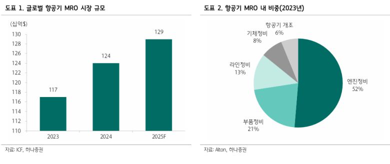 글로벌 항공기 운항량 회복세와 더불어 노후 항공기 비중이 확대되고, 차세대 기종 인도는 지연되면서 MRO 수요 성장세는 당분간 지속될 것이란 분석이다.