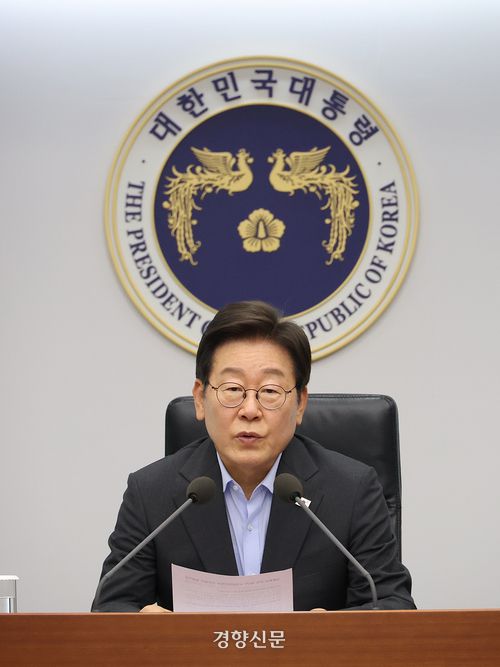이재명 대통령이 24일 서울 용산 대통령실 청사에서 열린 4차 수석·보좌관 회의에서 발언하고 있다. 대통령실사진기자단·김창길 기자