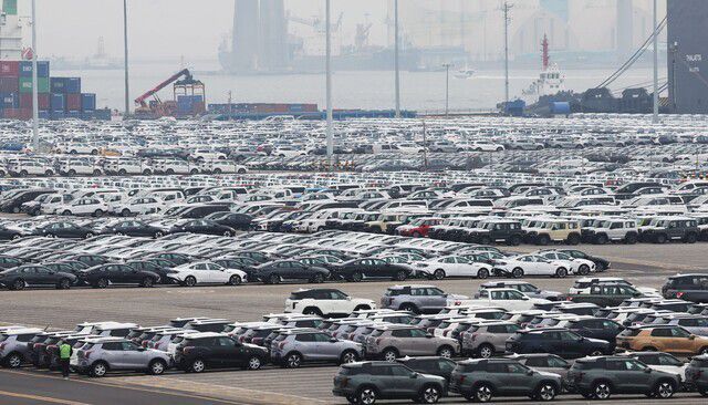 평택항에 놓인 수출 차량. 연합뉴스 |