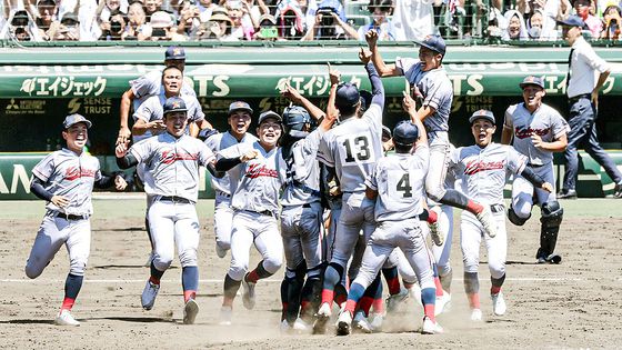 결승전은 한편의 드라마였다. 지난해 고시엔에서 교토국제고의 우승을 이끈 왼손 에이스 니시무라 잇키가 1회초 투런 홈런을 내주며 불안하게 출발했고, 8회초까지 2점 차(1-3) 간격이 이어졌다. ‘마법의 시간’은 8회말부터였다. 2사 2,3루 찬스에서 1번 타자 하세가와 하야테가 중전 안타를 때려내 주자 두 명을 모두 홈으로 불러들이며 3-3 동점을 만들었다.