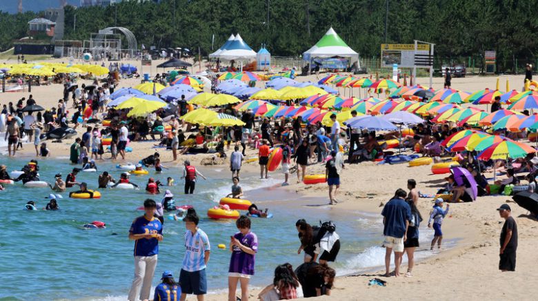 폭염이 계속된 27일 강원 강릉시 강문해수욕장이 피서객들로 북적이고 있다. 연합뉴스 |