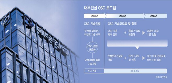 큰 틀에서 보면 내년까지 OSC 기술을 정립하고, 2032년까지 OSC 기술고도화 및 확대를 추진한다. OSC 기술 정립을 위해 기술을 축적하는 한편, 국책과제를 통한 기술개발 등을 확보해 OSC 공법을 표준화할 계획이다.