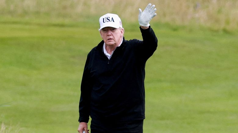 닷새간 개인 일정으로 스코틀랜드를 찾은 도널드 트럼프 미국 대통령이 현지시간 26일 본인 소유의 리조트에서 골프 라운딩을 즐겼습니다.