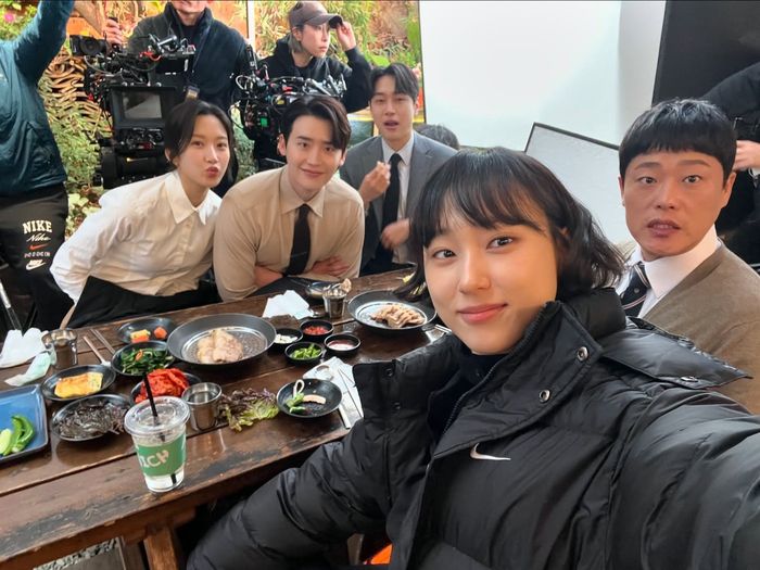 사진에는 극 중 어쏘 변호사로 호흡을 맞추고 있는 문가영, 강유석, 류혜영, 임성재와 함께 식사를 하거나 장난스럽게 포즈를 취하는 등 다정한 모습이 담겼다. 촬영장에서는 음식점에 둘러앉아 음식을 나누는 자연스러운 순간부터 테이블에 둘러 앉아 환하게 웃거나 브이(V) 포즈를 하는 등 활기찬 분위기가 포착됐다.