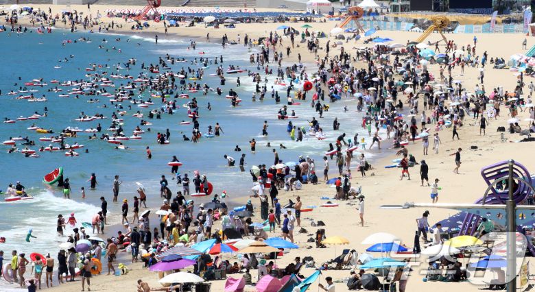 본격적인 여름 휴가철이 시작된 27일 부산 해운대해수욕장을 찾은 피서객들이 물놀이를 즐기며 더위를 식히고 있다. 2025.7.27/뉴스1 ⓒ News1 윤일지 기자 |