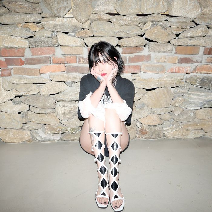 또 다른 게시물에서는 짧은 하의를 입은 채, 독특한 디자인의 흑백 롱글래디에이터 샌들을 신고 바닥에 쭈그려 앉아 있는 현아의 모습이 담겼다. 배경의 거친 돌담과 대비되는 강렬한 신발과 노출이 독특한 스타일을 완성하며, 현아 특유의 자유분방한 패션 감각이 돋보인다.