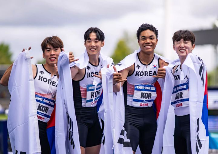 (MHN 이규원 기자) 한국 육상 남자 400m 계주 대표팀이 2025 라인-루르 하계 세계대학경기대회에서 금메달을 목에 걸었다.