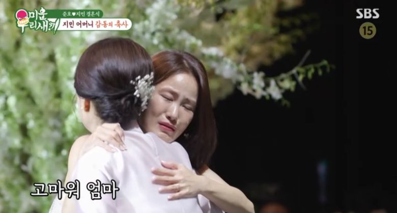 김지민 어머니는 "지민이가 평생 한 번 있는 결혼식 입장을 하면서 아빠가 손을 잡아줬더라면. (김)대희 씨가 해줘서 고맙지만 많은 아쉬움이 있다"면서 눈시울을 붉혔다.