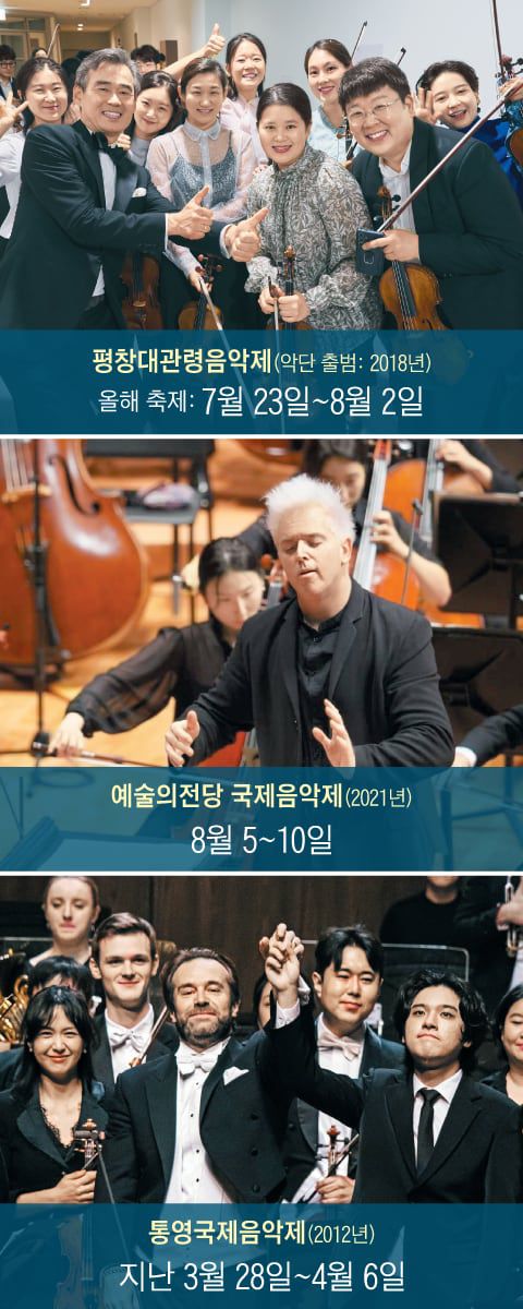 한국 음악계도 ‘페스티벌 오케스트라’ 전성시대다. 페스티벌 오케스트라는 말 그대로 매년 음악제를 위해 결성되는 악단을 뜻한다. 독일 작곡가 바그너의 오페라만 전문적으로 연주하는 ‘바이로이트 페스티벌 오케스트라’, 스위스 루체른 페스티벌의 ‘루체른 페스티벌 오케스트라’ 등이 대표적이다. 오케스트라의 ‘올스타 팀’인 셈이다. 특히 베를린 필의 지휘자를 지낸 클라우디오 아바도(1933~2014)가 2000년대 루체른 페스티벌 오케스트라와 함께 말러 교향곡 연주회를 열면서 세계 음악계의 이목이 집중됐다. 음악 칼럼니스트 유정우씨는 “유럽에서는 매년 9월쯤부터 이듬해 6월까지 공연장의 시즌이 열린 뒤 7~8월 여름휴가 기간 동안 여러 악단의 단원들이 모이는 페스티벌 오케스트라가 정착했다”고 했다.