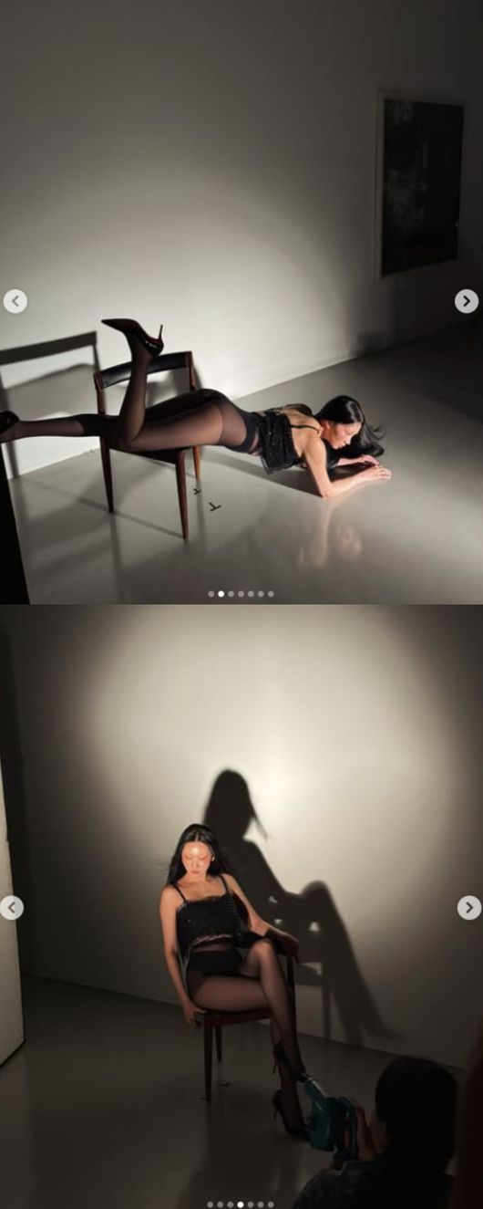 사진 속 장윤주는 완벽한 하의실종 룩을 선보인 채 포즈를 취하고 있다. 그는 의자에 다리를 걸치고 엎드린 독특한 자세를 선보인 모습. 그는 촬영 내내 카리마스 넘치는 자태를 뽐내 눈길을 끌었다.
