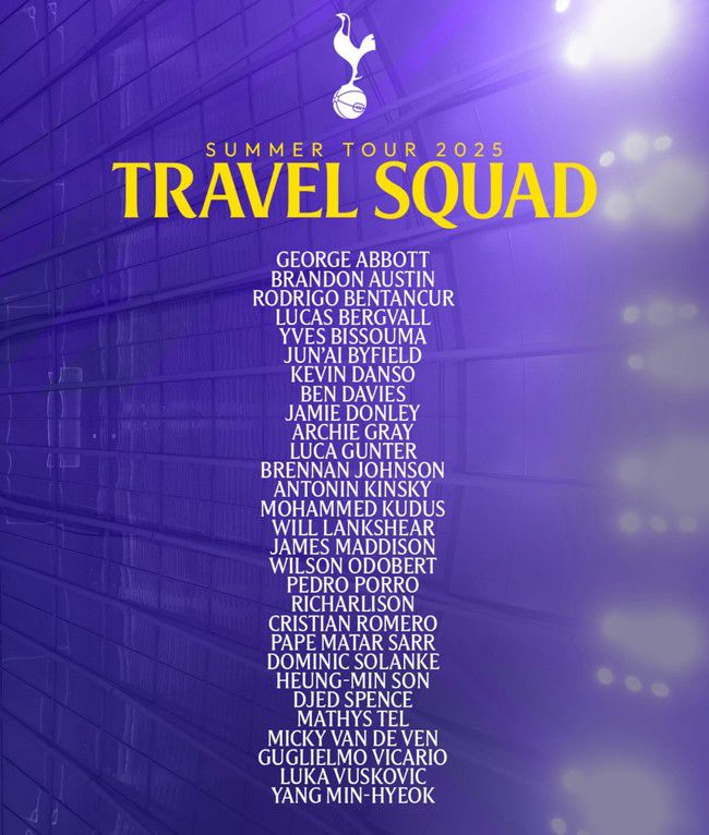 결국 골드 기자의 말처럼 양민혁은 손흥민과 함께 명단에 포함됐다. 이 밖에도 조지 애벗, 브랜든 오스틴, 로드리고 벤탄쿠르, 루카스 베리발, 이브 비수마, 주나이 바이필드, 케빈 단소, 벤 데이비스, 제이미 돈리, 아치 그레이, 루카 건터, 브레넌 존슨, 안토닌 킨스키, 모하메드 쿠두스, 윌 랭크셔, 제임스 매디슨, 윌손 오도베르, 페드로 포로, 히샬리송, 크리스티안 로메로, 파페 사르, 도미닉 솔란케, 마티스 텔, 미키 판 더 펜, 굴리엘모 비카리오, 루카 부스코비치 등이 명단에 이름을 올렸다.