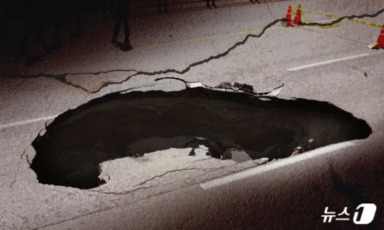 [파이낸셜뉴스] 고온에 아스팔트가 녹으면서 땅꺼짐이 발생했다.