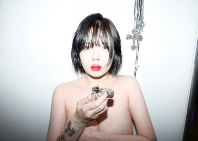 가수 현아가 상반신 누드 화보를 공개했다.