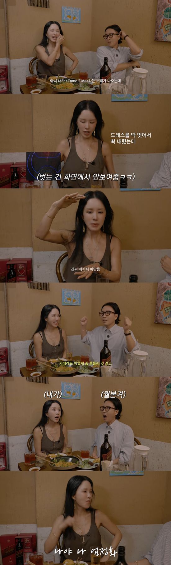 그러면서 "팬티를 한번 또 입어봤다. tvN 개국쇼다. 생방송인데 '초대'로 시작했다. '초대'는 드레스를 입었다. 그다음 'Come 2 Me' 내 신곡이 딱 나왔다. 드레스를 벗었는데 아주 시원하더라. 막 두근거리는 마음으로 나왔는데 전화기가 불이 난 거다"라고 말했다.