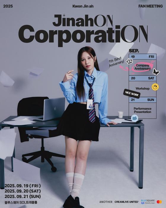 창립기념일(19일), 워크숍(20일), 성과보고회(21일) 등 사흘간 매일 다른 테마로 진행되며, 진아온 코퍼레이션의 '본부장'으로 변신한 권진아는 풀밴드 라이브 무대는 물론, 팬들과 함께 호흡할 수 있는 다양한 프로그램을 통해 매일 새로운 재미와 감동을 선사할 예정이다.