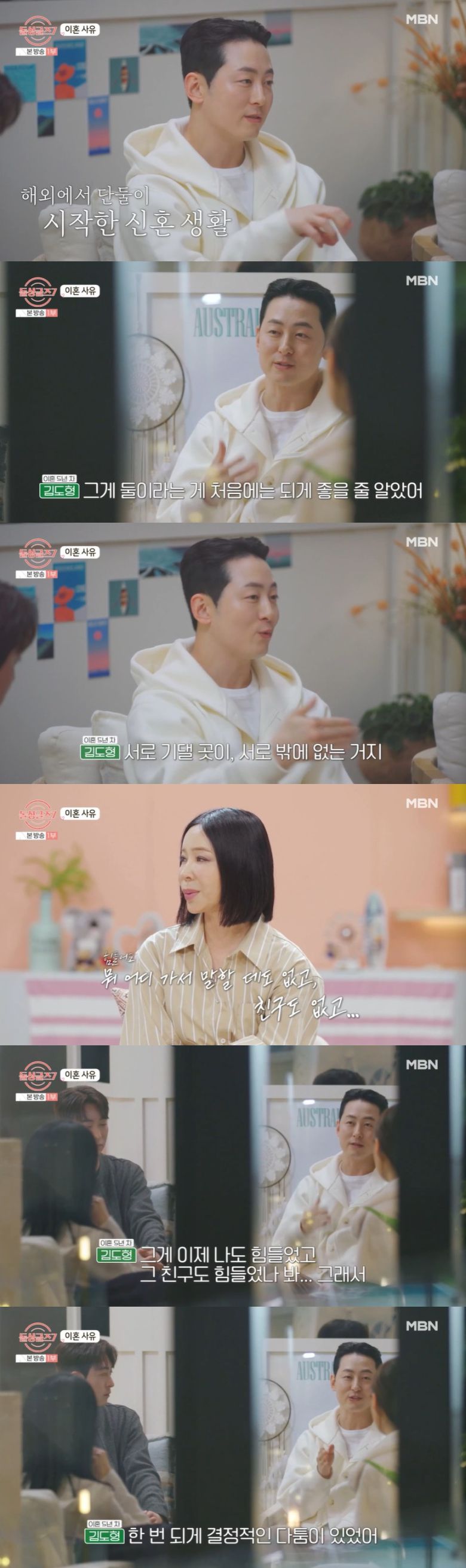 그렇게 해외에서 단둘이 시작하게 된 신혼 생활에 도형은 처음엔 되게 좋을 줄 알았다고. 그는 "신혼을 둘만의 파라다이스에서 보내겠구나 (싶었다)"라면서 "둘밖에 없는 게 함정이 될 줄 몰랐다. 서로 기댈 곳이 서로 밖에 없는 거다"라고 말했다.