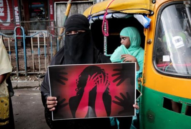 2023년 인도 콜카타에서 열린 여성 성폭행 반대 시위에서 참가한 히잡을 쓴 한 여성. (사진=EPA 연합뉴스)