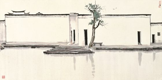 먹으로 수평과 수직선을 그어 건물의 윤곽을 잡았다. 흰 벽은 칠하지 않고 그대로 여백으로 남겼다. 집 앞 나무에 초록 잎이 돋는 봄, 제비 두 마리가 날아든다. 고향 강남 일대의 전통 가옥을 그리며 62세 우관중(吳冠中ㆍ1919~2010)은 득의양양했을까. 이런 글을 남겼다.