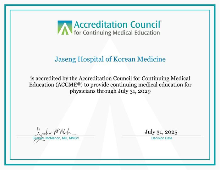 자생한방병원은 미국 평생의학교육인증원(ACCME)으로부터 보수교육기관 재인증을 받았다고 28일 밝혔다. 자생한방병원의 한의학 프로그램을 이수하면 해외 의사가 관련 면허를 계속해서 유지할 수 있게 됐다.