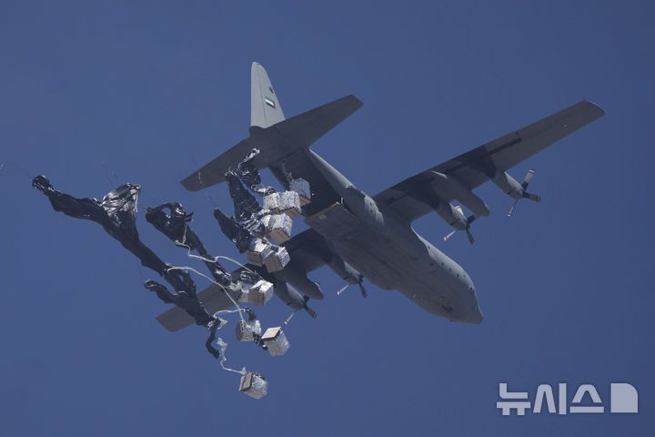 [서울=뉴시스] 류현주 기자 = 이스라엘이 극심한 식량난에 처한 팔레스타인 가자지구에 공중 투하 방식으로 구호품 공급에 나섰다.