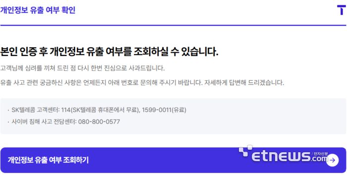 SK텔레콤이 개인정보 유출 조회 서비스를 28일 시작했다.