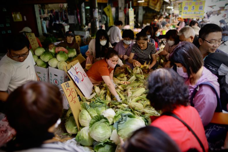 대만 타이베이의 한 전통시장에서 시민들이 채소를 고르고 있다. EPA연합뉴스