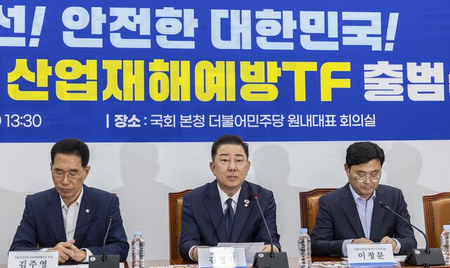 태스크포스 단장을 맡은 김주영 민주당 의원(국회 환경노동위원회 간사)은 “중대재해처벌법이 시행된 지 3년이 지났지만 여전히 많은 노동자가 일터에서 돌아오지 못하고 있다”며 “20년 넘게 이어진 오이시디(OECD·경제협력개발기구) 국가 중 산업재해 발생률과 사망재해율 최상위권이란 오명을 이제는 벗어야 한다”고 밝혔다. 그는 “이재명 대통령은 지난 5일과 17일 국무회의와 수석보좌관 회의에서 종합적인 산업안전재해 대책 마련을 주문한 것에 이어, 최근 25일 산업재해 사고가 끊이지 않던 에스피씨(SPC) 시흥 공장에 직접 방문해서 8시간 초과 야근 폐지를 이끌어냈다”며 “민주당은 이재명 정부와 함께 비용 절감을 위해 노동자가 희생되지 않는, 노동자가 안전한 대한민국을 만들어 가겠다”고 말했다.