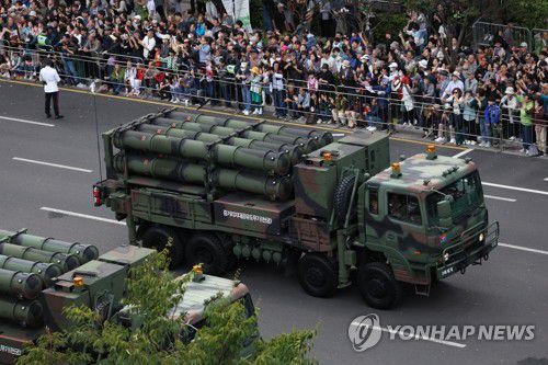 중거리지대공유도무기 천궁, 건군 76주년 국군의날 시가행진(서울=연합뉴스) 김도훈 기자 = 건군 제76주년 국군의 날 시가행진이 열린 1일 서울 중구 세종대로에서 중거리지대공유도무기 천궁이 광화문 방향으로 행진하고 있다. 2024.10.1 superdoo82@yna.co.kr