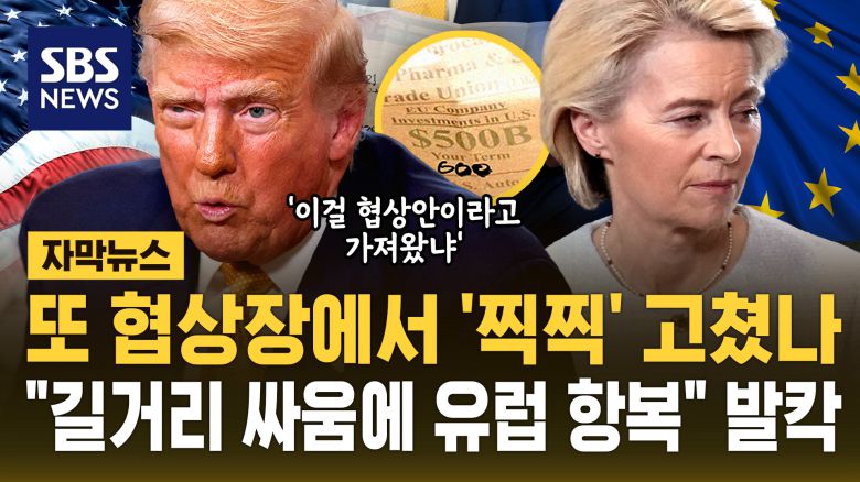 EU 측이 10%로 제안한 관세는 15%로, 대미 투자 초안은 5천억 달러였지만 트럼프가 6천 억 달러로 고친 흔적이 보입니다.