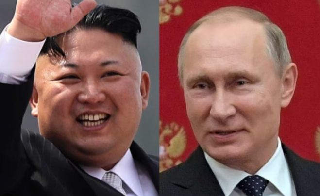 왼쪽부터 김정은 북한 국무위원장, 블라디미르 푸틴 러시아 대통령 자료사진 |