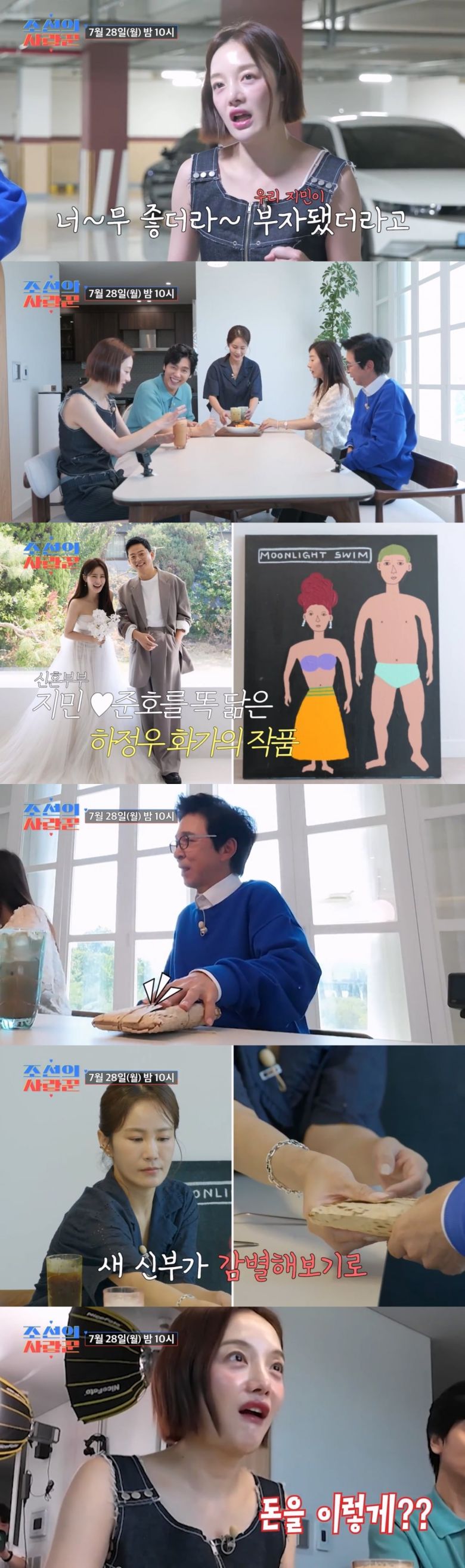 28일 방송되는 TV조선 ‘조선의 사랑꾼’에서는 사랑꾼 MC들이 김지민의 신혼집 첫 집들이에 나선다. 김지민의 신혼집에 방문한 적 있는 황보라는 "너무 좋더라, 부자 됐더라. 부티가 확 난다"라고 흥분했다.