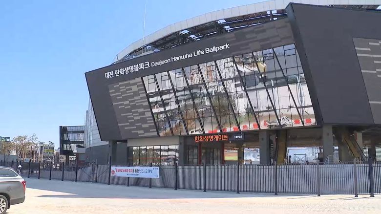 프로야구 한화의 홈구장 대전 한화생명 볼파크에서 간판 볼트 연결 부위 중 한쪽이 떨어지는 사고가 발생했습니다.