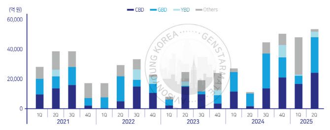 서울 오피스 거래규모 추이 (자료=젠스타메이트 리서치센터 ‘2025년 2분기 오피스 마켓 리포트’)