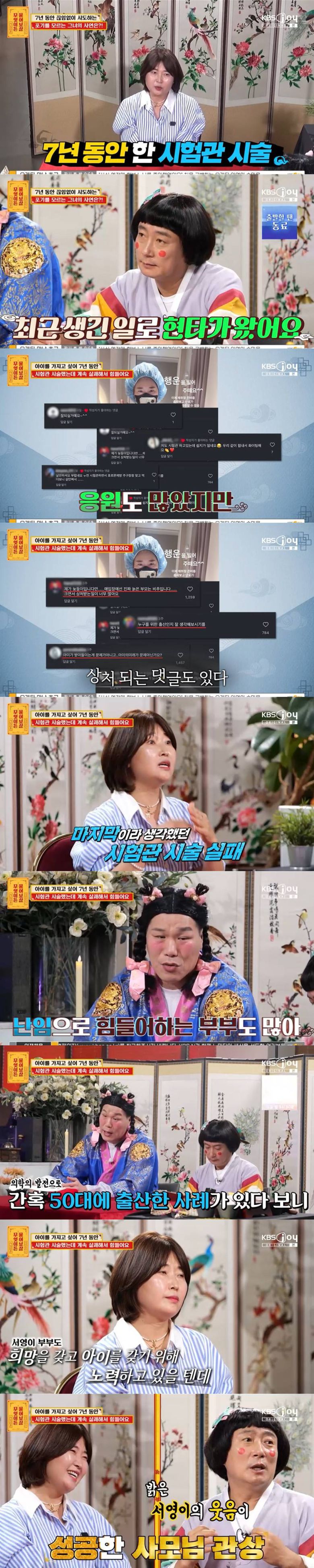 28일 방송된 KBS Joy '무엇이든 물어보살' 326회에는 7년 동안 시험관 시술을 시도하고 있다는 50대 사연자가 등장했다.