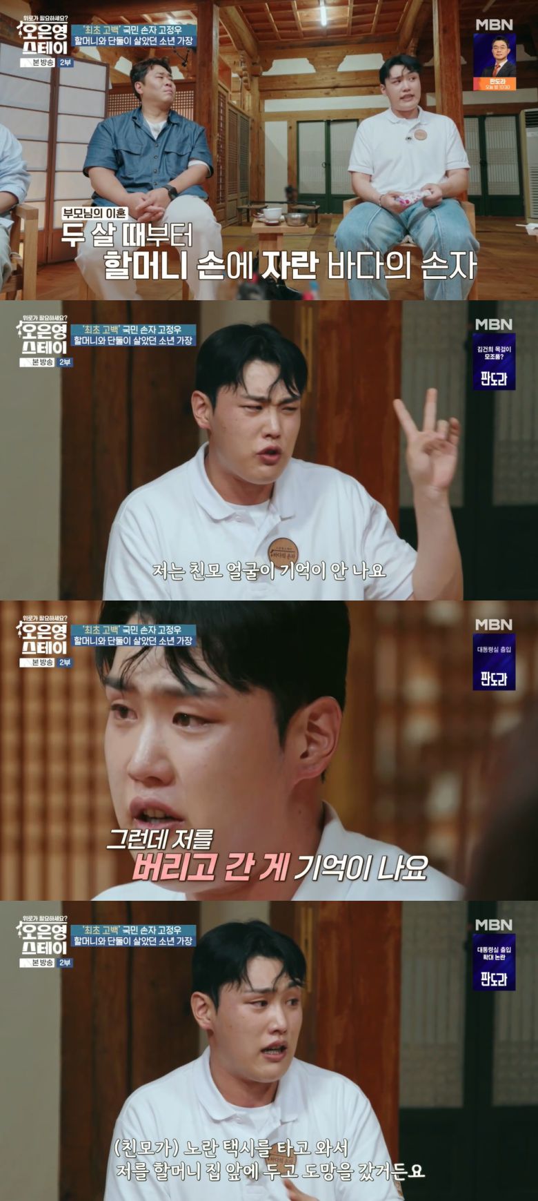 28일 방송된 MBN ‘오은영 스테이’ 6회에서 ‘바다의 손자’라는 이름으로 등장한 고정우가 힘들었던 인생사를 털어놓았다.