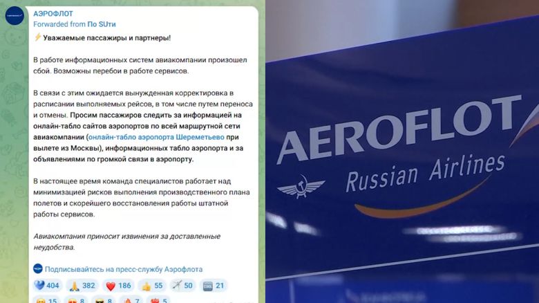 아에로플로트는 현지시간 28일 텔레그램을 통해 "항공사 정보 시스템에 장애가 일어나 일부 서비스에 일시적 차질이 있을 수 있다"고 밝혔습니다.
