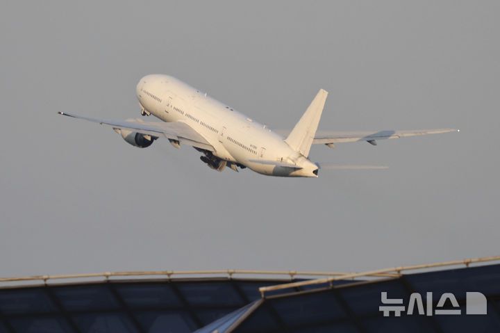 [모스크바=AP/뉴시스] 러시아가 모스크바-평양 직항 여객기 운항을 시작한 가운데 27일(현지 시간) 모스크바 외곽 셰레메티예보 국제공항에서 북한 평양행 노드윈드항공 소속 보잉 777-200ER 여객기가 이륙하고 있다. 2025.07.29. |