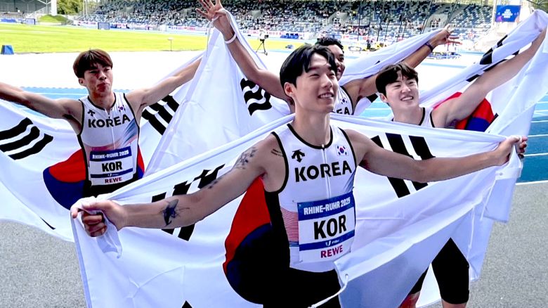 유니버시아드 400m 계주에서 나온 역사상 첫 금메달이었습니다.