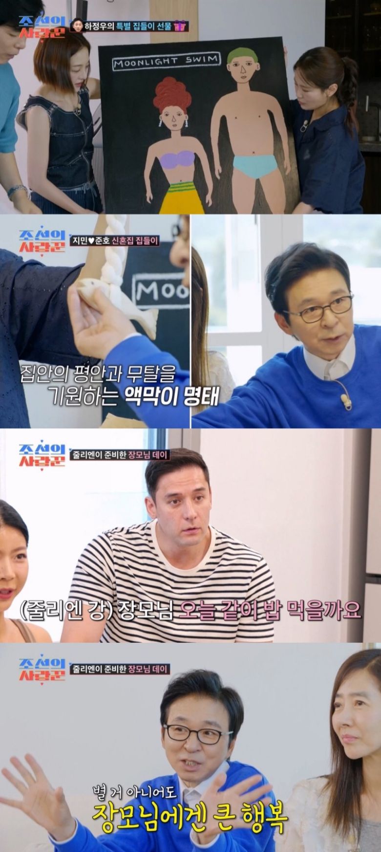 손주에 대해 아쉬워하는 장모님을 향해 줄리엔 강은 "내 방법으로 장모님을 챙길 것"이라고 속내를 밝혔다. VCR을 지켜보던 김지민은 "제가 스케줄 나갔다가 집에 들어오면 준호 오빠와 엄마가 둘이 저녁을 먹고 있다"면서 장서 간의 훈훈한 일상을 공개하기도 했다.