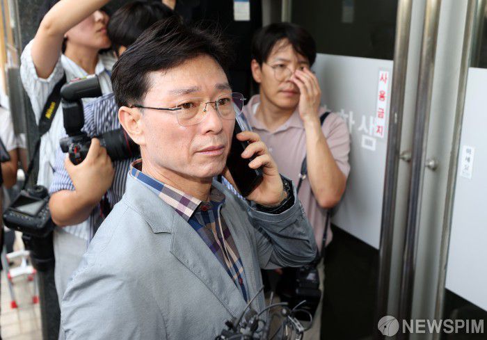 [서울=뉴스핌] 정일구 기자 = 임성근 전 해병대 1사단장이 29일 오전 서울 서초구 순직해병 특검(이명현 특별검사) 사무실에 업무상과실치사상 사건 신속 결정 요청서 제출을 위해 방문했지만 출입문이 닫혀 들어가지 못하자 특검 관계자에게 전화를 걸고 있다. 2025.07.29 mironj19@newspim.com |